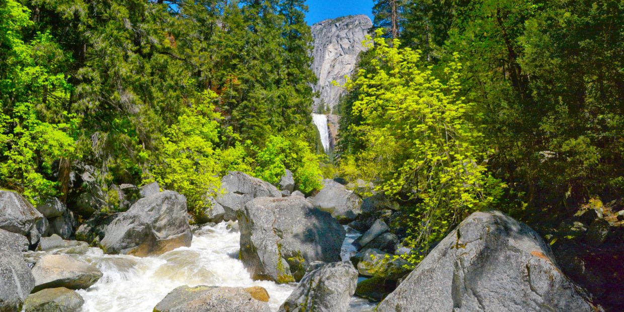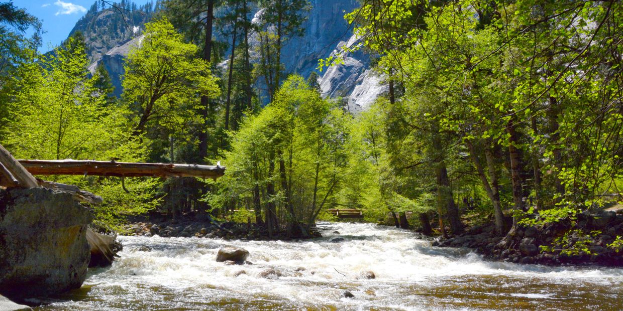 This is the runoff from Vernal Falls, and it is flowing strong here in the spring.